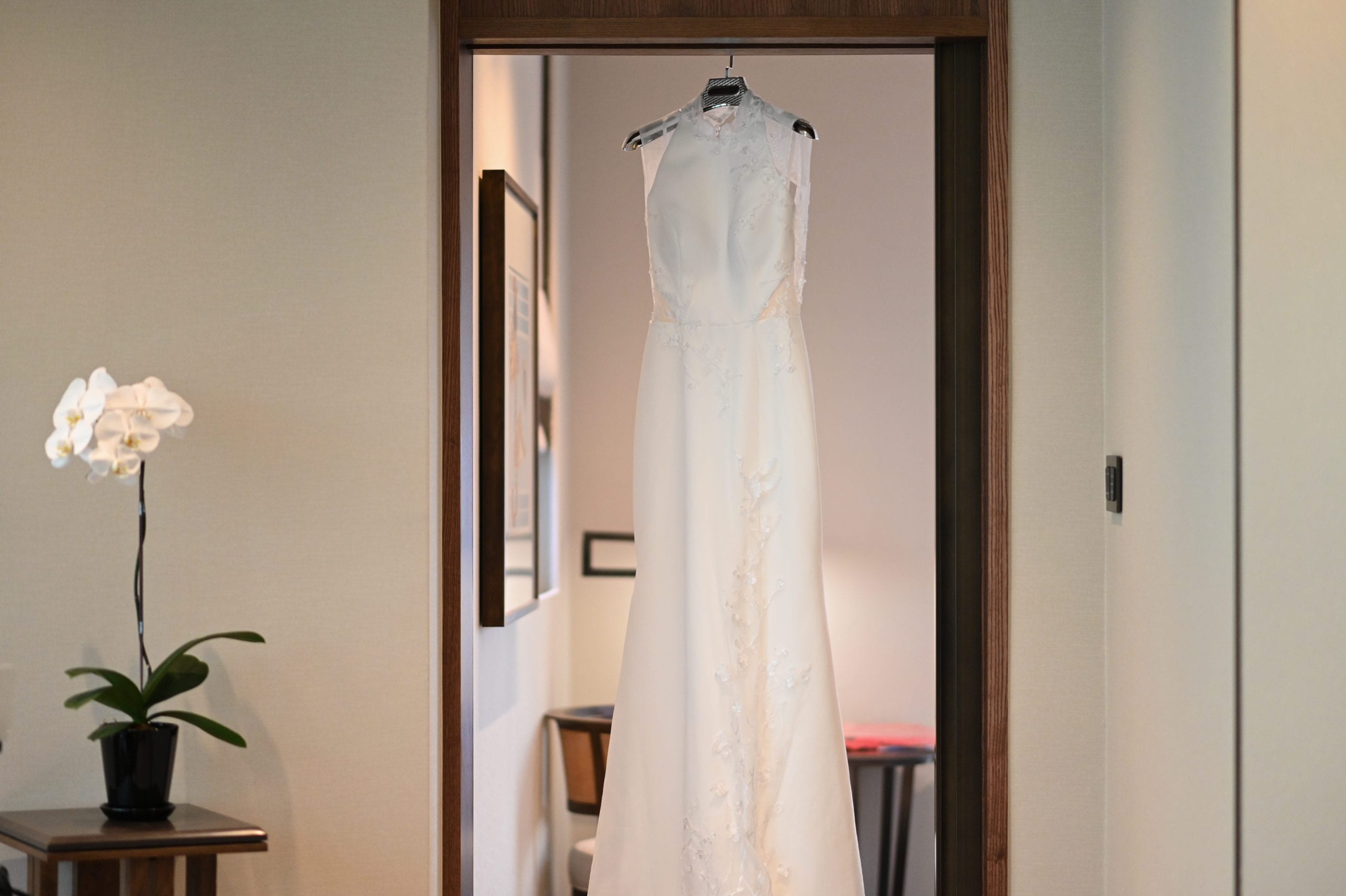 It was my personal favourite in the whole collection, but after I completed the design, it was left untouched for quite a few months – it was difficult. Most brides who want a cheongsam would look for something coloured as a change of outfit, and most brides who are looking for their main white wedding gown wouldn’t look for something so oriental. My gown was stuck in limbo. It made my question myself, until one day, I met a bride who despite not wanting a fitted cut, gave it a go, and it was love at first sight, both for the bride, and for me. I felt like my gown had found its owner, and vice versa.