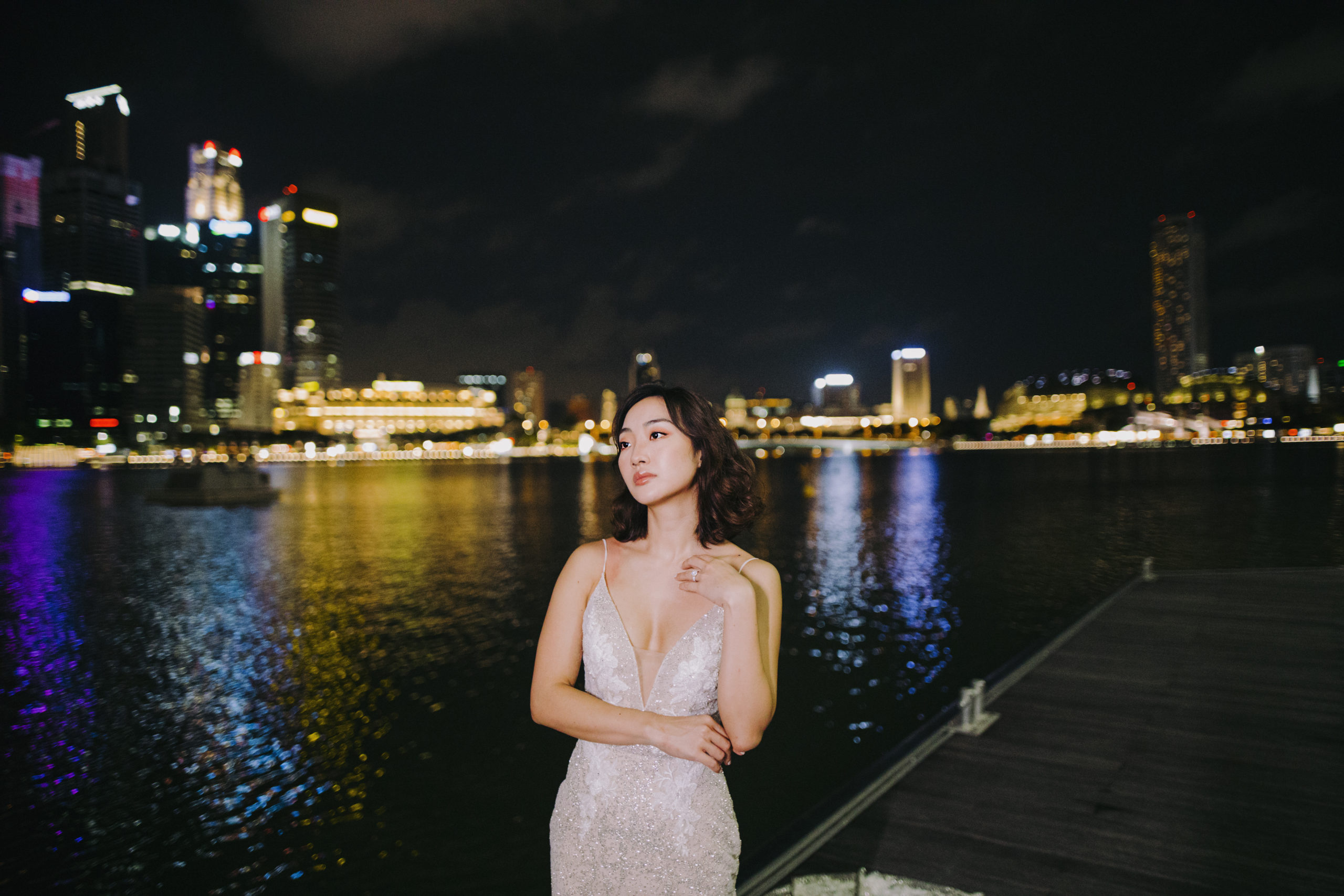 What better way to match the beautiful city lights, than with the glittery Ava gown, completed with a detachable train for extra dramatic effect! We love this glitter tulle fabric so much that we made 2 gowns from this!