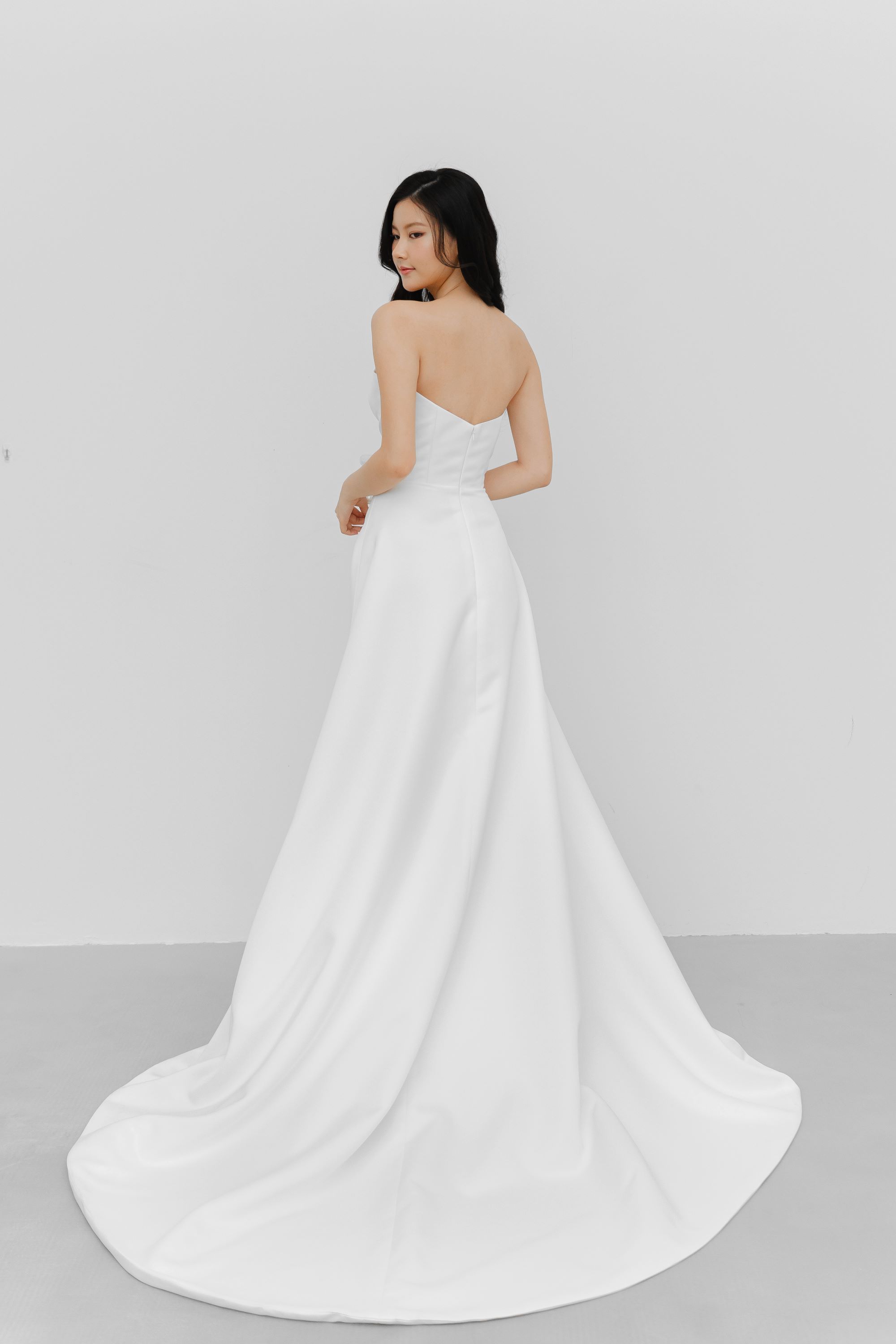 FIT – We steer clear of corsetry and instead put in every effort to ensure your dress is the right fit & length. Being locally designed and made also means that our gowns cater to the Asian fit, with more accurate proportions e.g. torso length, length of gown etc. Our team of designers and seamstresses have many years of experience and have fitted hundreds of brides – you can rest assured that you’ll be in great hands!