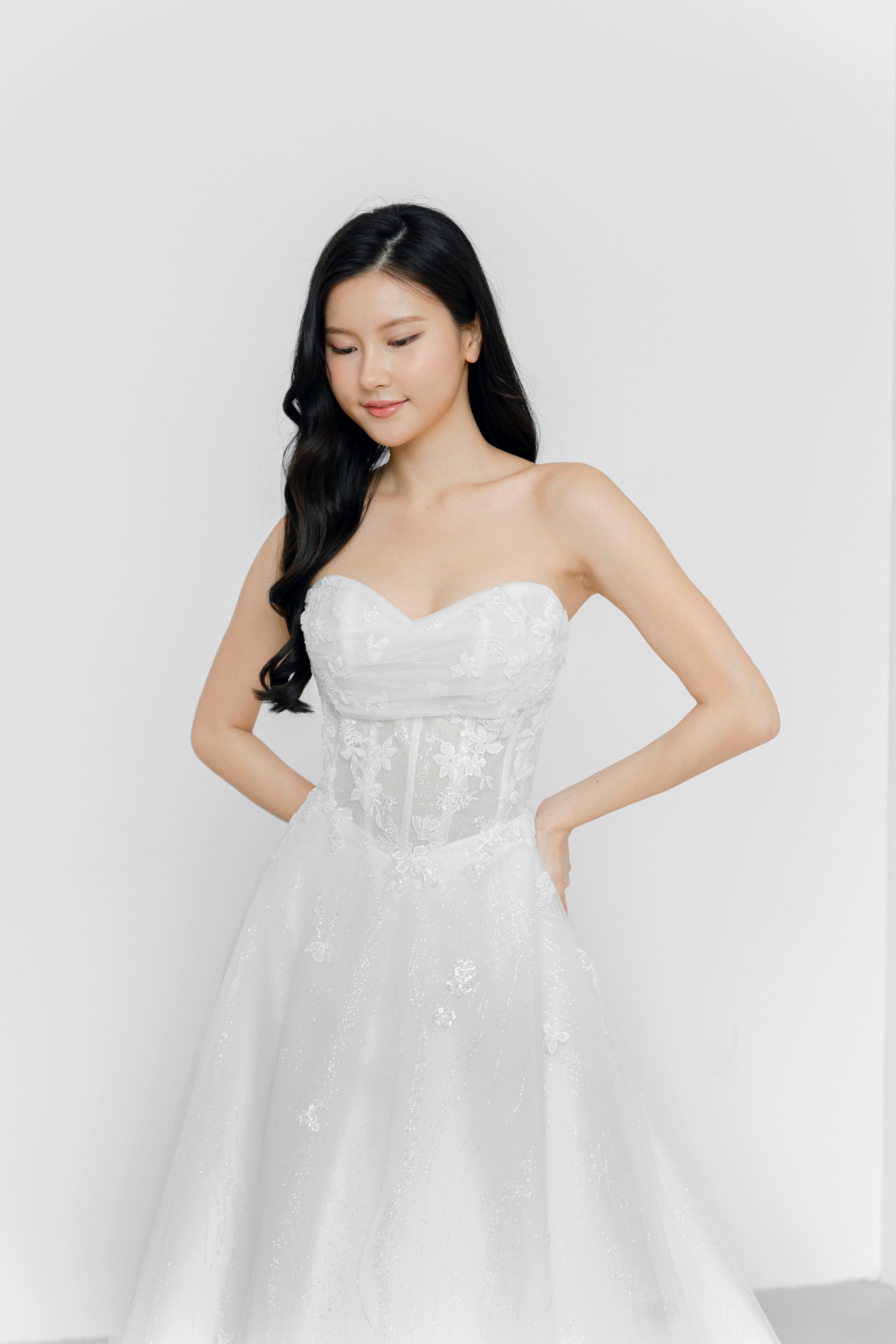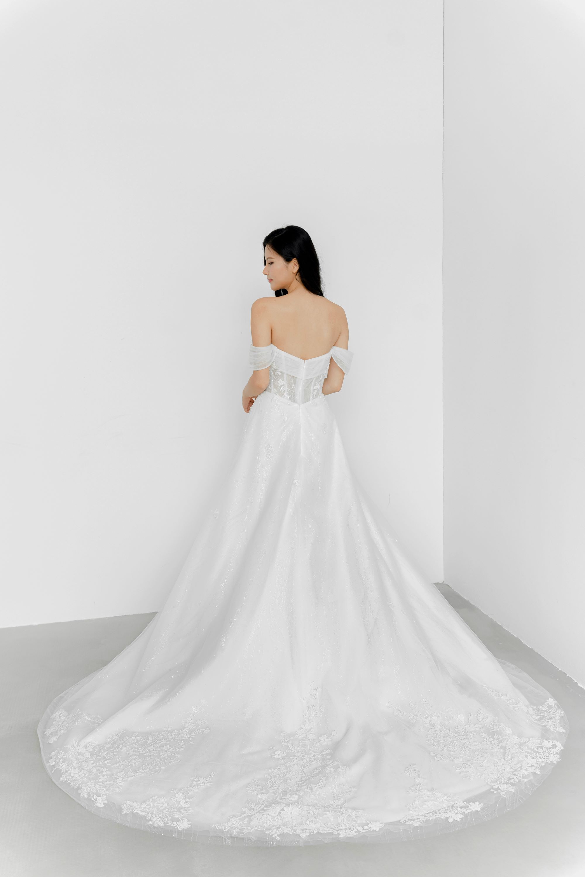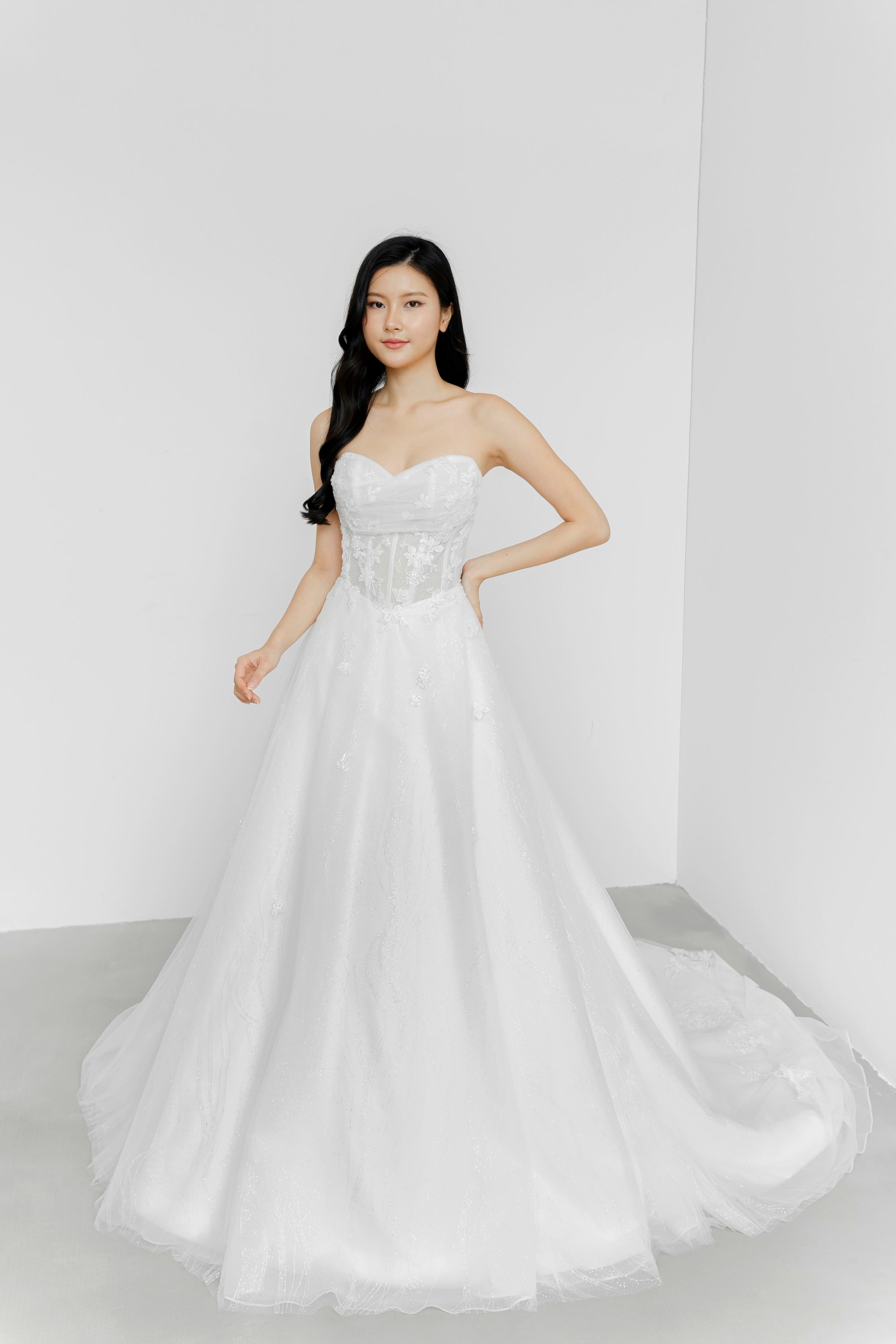 FIT – We steer clear of corsetry and instead put in every effort to ensure your dress is the right fit & length. Being locally designed and made also means that our gowns cater to the Asian fit, with more accurate proportions e.g. torso length, length of gown etc. Our team of designers and seamstresses have many years of experience and have fitted hundreds of brides – you can rest assured that you’ll be in great hands!